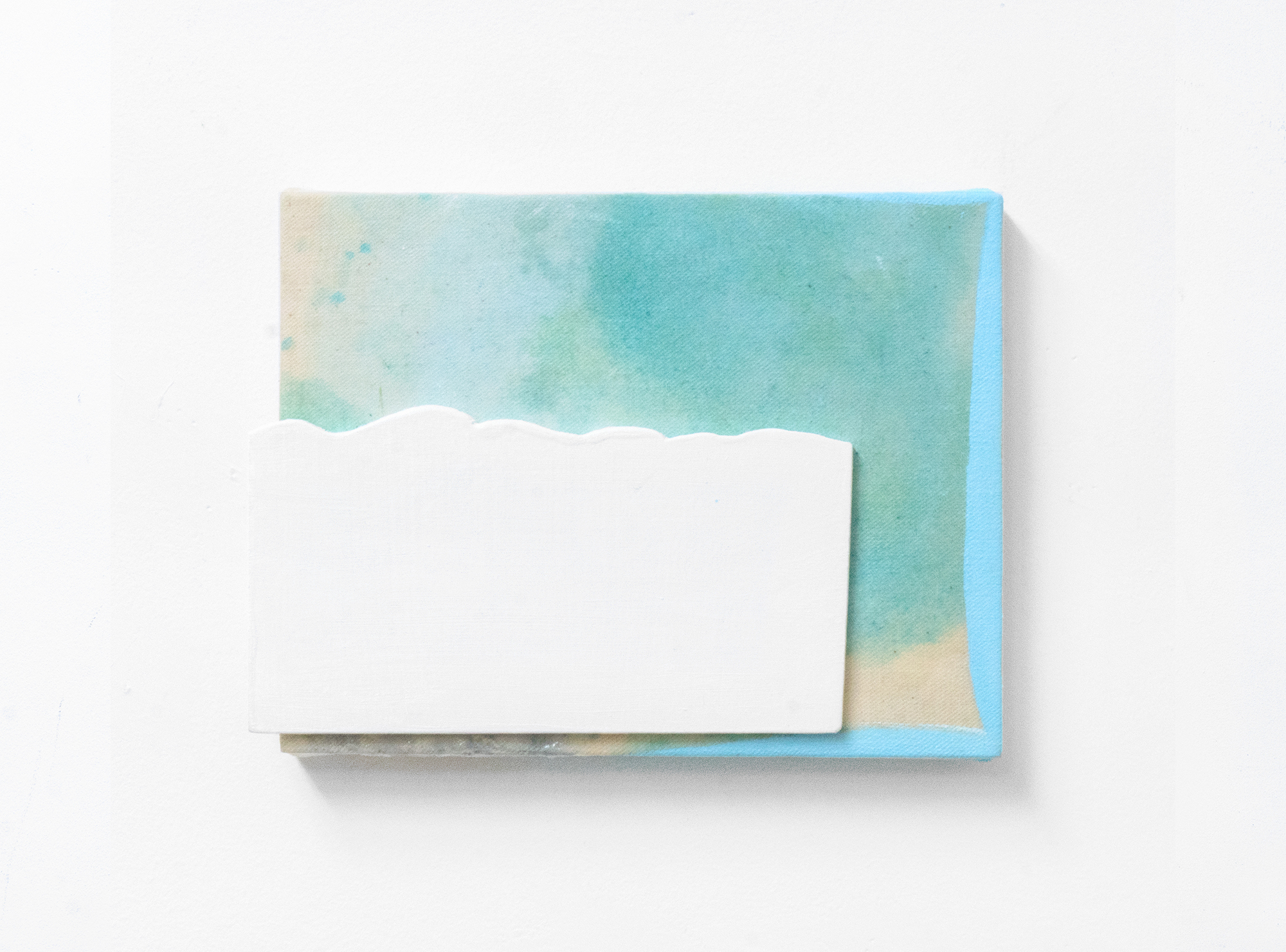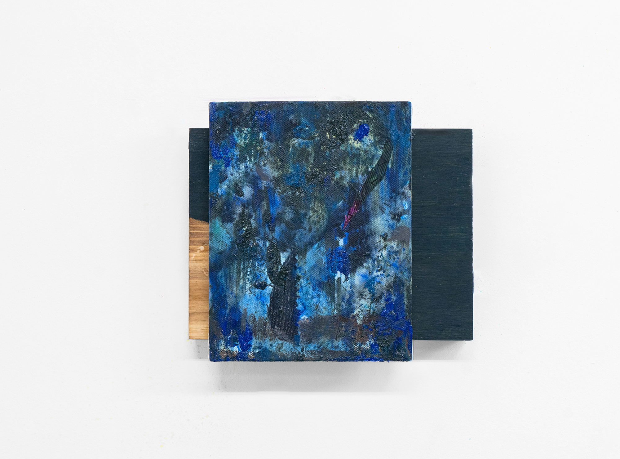 oil, cut cloth, cotton on wood pane